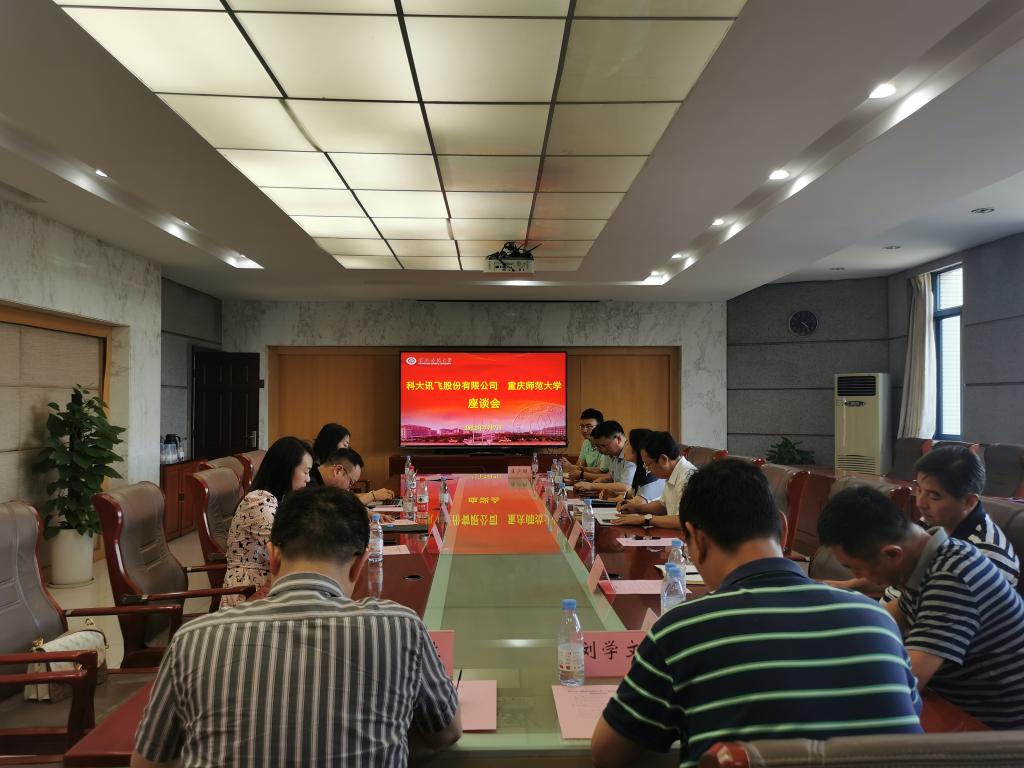 7月7日,科大讯飞股份有限公司高教人才业务总裁胡江院一行到我校就共建智慧教育联合创新中心进行洽谈。副校长孟小军及党政办、国内合作与联络中心、科研处、教务处、重庆国家应用数学中心、比思论坛