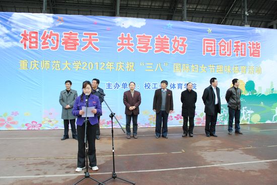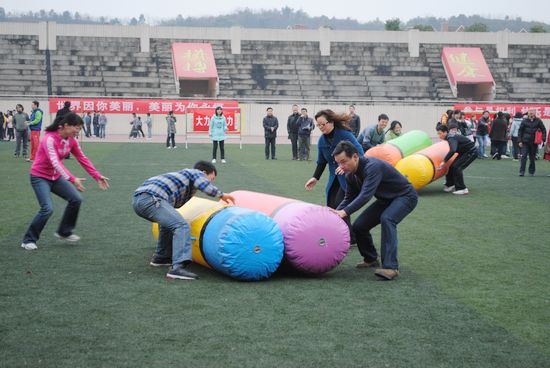 “相约春天、共享美好、同创和谐”。3月8日下午,由校工会主办的一场别开生面的庆“三八”趣味体育活动在大学城校区田径运动场隆重举行,来自各学院、部门工会的23支由男女教职工混合组成的队伍及啦啦队近千人参加了此次活动。比思论坛 教职工在院党政的大力支持下,在学院工会的认真组织下,齐心协力,顽强拼搏,再一次在全校性活动中谱写辉煌,勇夺团体总分第四名,荣获二等奖。