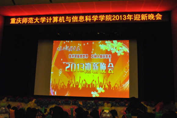 19:00晚会正式开始,开幕视频似画卷一般向观众飞速展开,漆黑的LED大屏幕上,顿时流光溢彩,令人不禁为“技术宅”的力量所震撼。接着,刘军书记上台致辞,观众们和刘书记一起回顾了学院发展的点滴,并真挚的欢迎2013级学生加入计信学院大家庭。