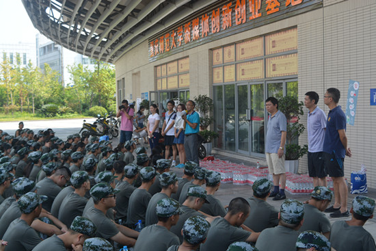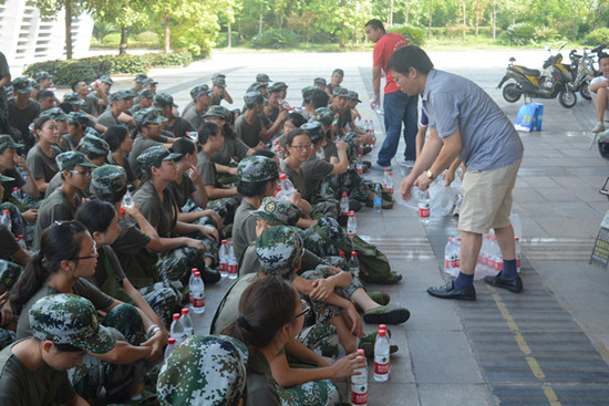最后,在同学们热烈的掌声和欢呼声中,学院领导将矿泉水分发至每一位同学手中,鼓励同学们继续发扬吃苦耐劳的精神,确保军训实效。相信同学们在学院领导的关怀和鼓励下会以更加饱满的热情和昂扬的斗志顺利完成本次军训任务。