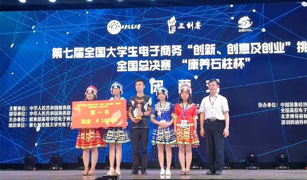 2017年7月20日至22日,由教育部主管、教育部高等学校电子商务类专业教学指导委员会主办的第七届全国大学生电子商务“创新、创意及创业”挑战赛(下称“三创赛”)全国总决赛在西安交通大学隆重举办。我校2支来自计信学院的本科生和研究生队伍参加。其中来自研究生队同学王涛、吴玉华、黎永越的“小骑士”团队获得一等奖;来自电子商务专业14级同学杨钰平、高玲及15级同学林巧、刘浩的“印象石柱”团队斩获特等奖第一名桂冠并登上央视电视台CCTV-13新闻荧屏,为学校争得荣誉。